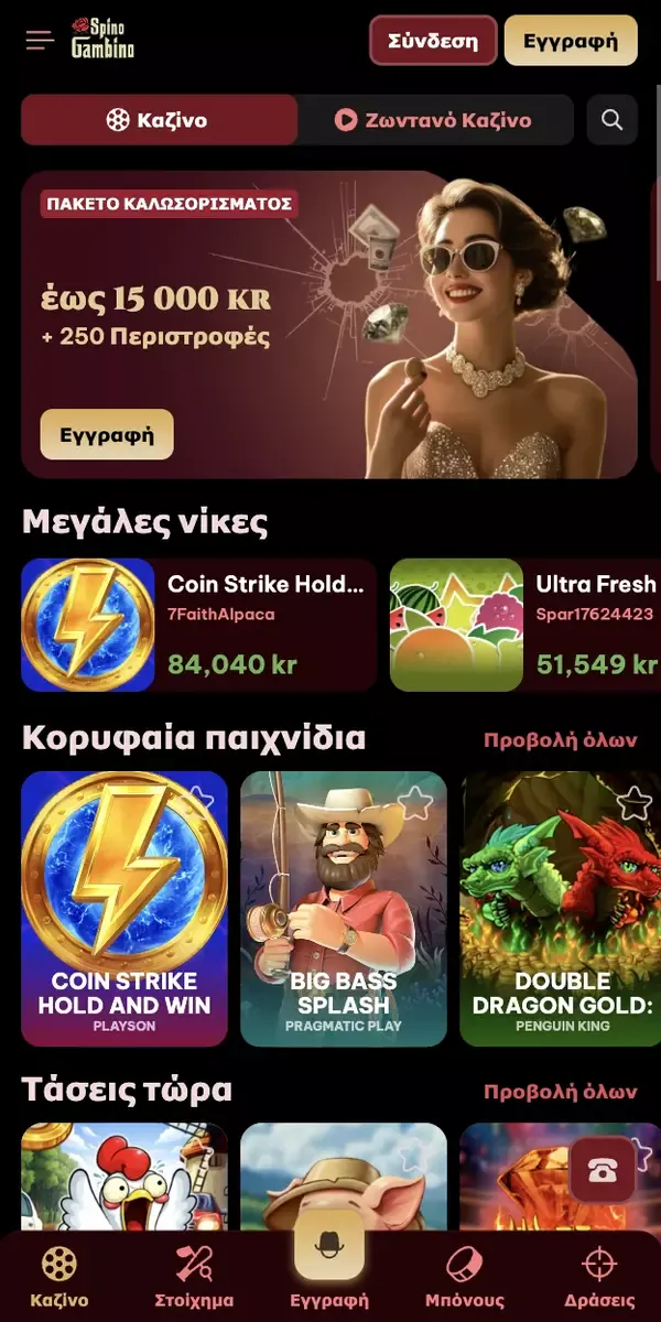 Μόλις εγκατασταθεί, το SpinoGambinoCasino κρατά σταθερές τις συνεδρίες σας και τα μενού εύχρηστα, ακόμη κι όταν μετακινείστε ανάμεσα σε παιχνίδια και το ταμείο. Μπορείτε επίσης να αλλάξετε γλώσσα σε Ελληνικά από τις ρυθμίσεις για πιο καθαρή πλοήγηση.